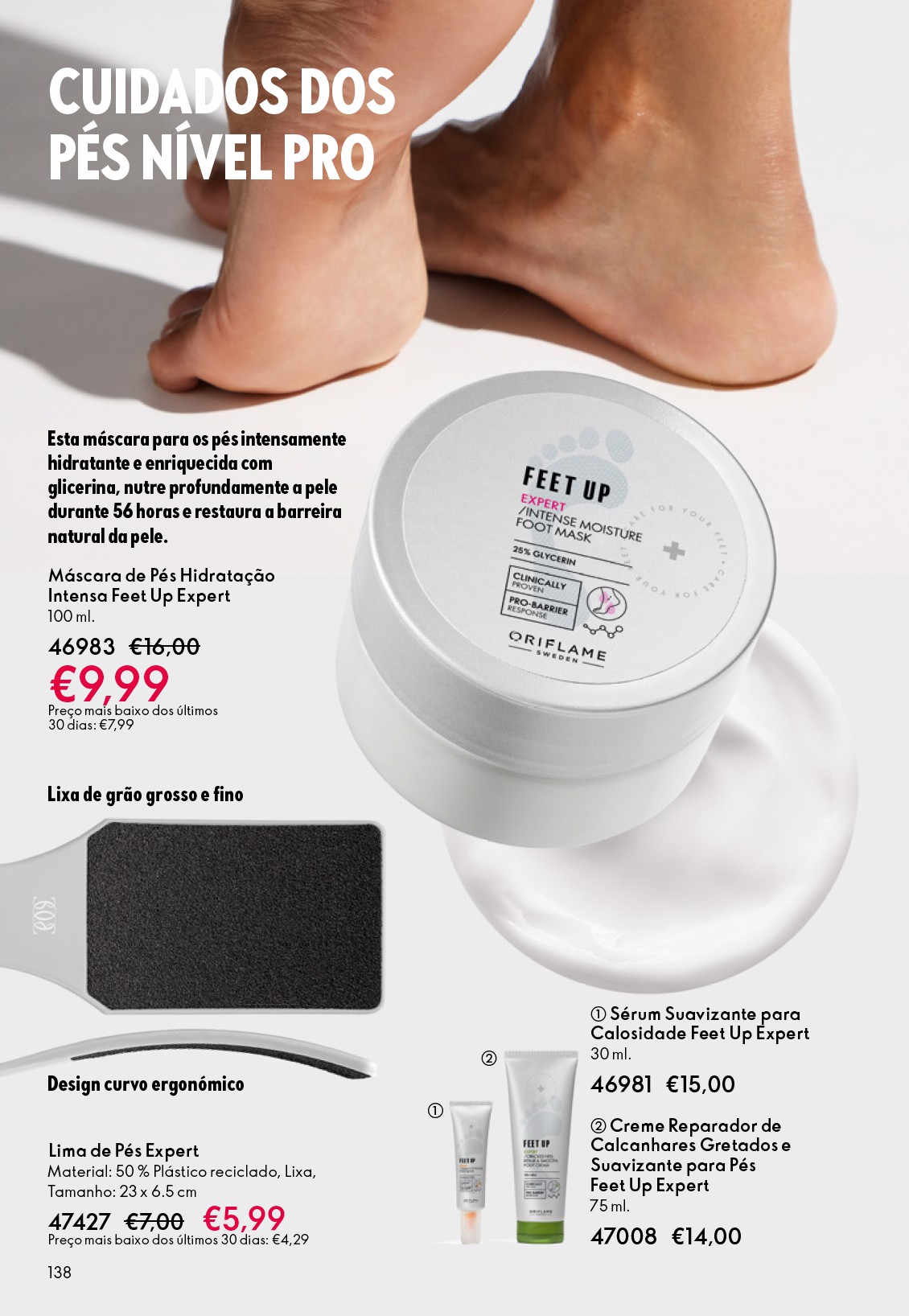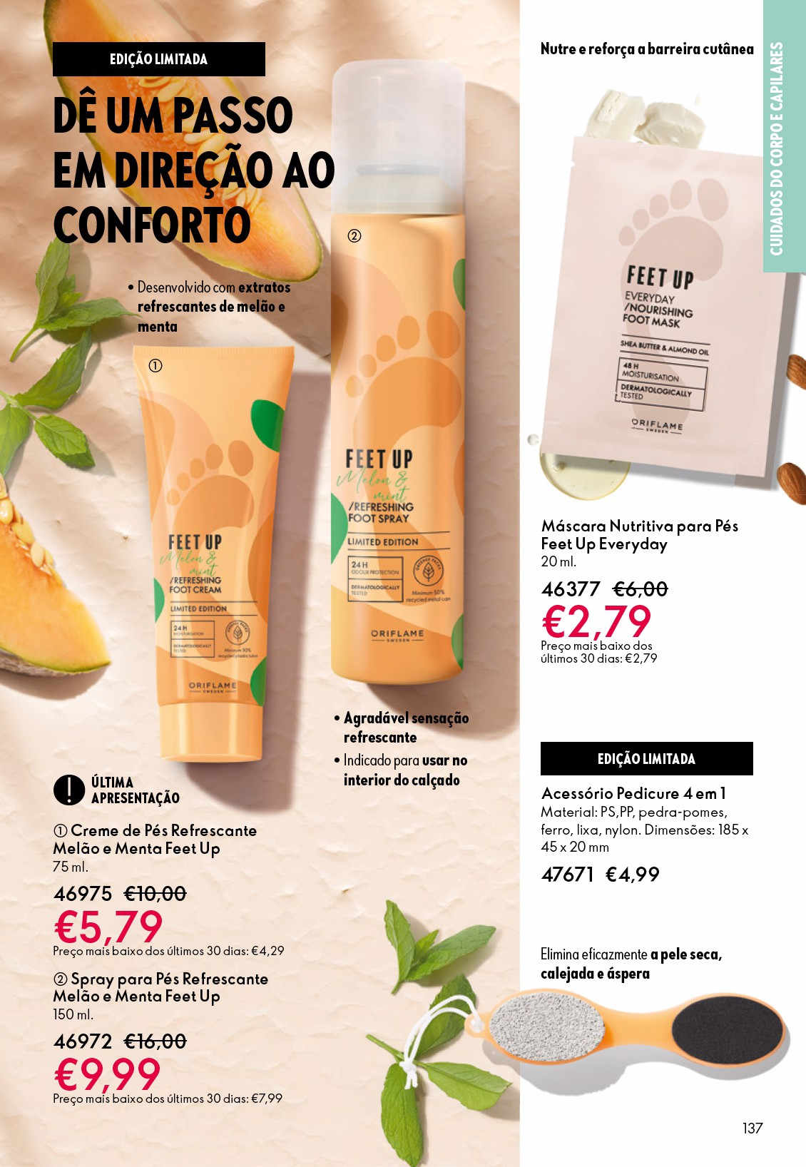 Creme de Pés Esfoliante Intensivo Feet Up Advanced Cosméticos Oriflame - Este creme rico, cremoso e de elevada eficácia, com grãnulos de pedra pomes natural, Mineral4E Blend e Manteiga de Karité nutritiva, esfolia eficazmente a pele, purifica-a e nutre a pele seca e áspera, deixando os pés suaves e polidos. 75 ml.